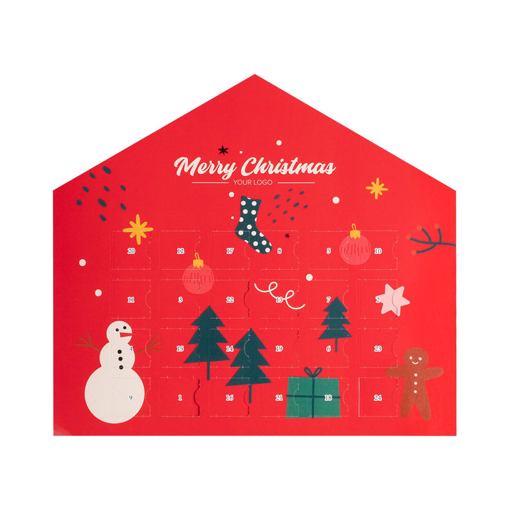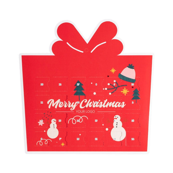 Breng de magie van december tot leven met de Adventskalender in Unieke Vorm – een feestelijke verrassing met 24 heerlijke chocolaatjes van melkchocolade (33% cacao). Elke dag een klein moment van genot, verpakt in een verpakking die volledig is afgestemd op jouw merk of ontwerp.