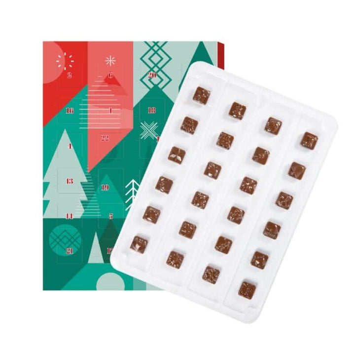 Maak de aanloop naar kerst extra bijzonder met de Adventskalender Mini – een stijlvolle en heerlijke manier om af te tellen tot de feestdagen. Achter elk van de 24 vakjes schuilt een verrukkelijk stukje melkchocolade (33% cacao), zorgvuldig vervaardigd voor een zachte, romige smaak.