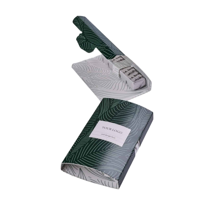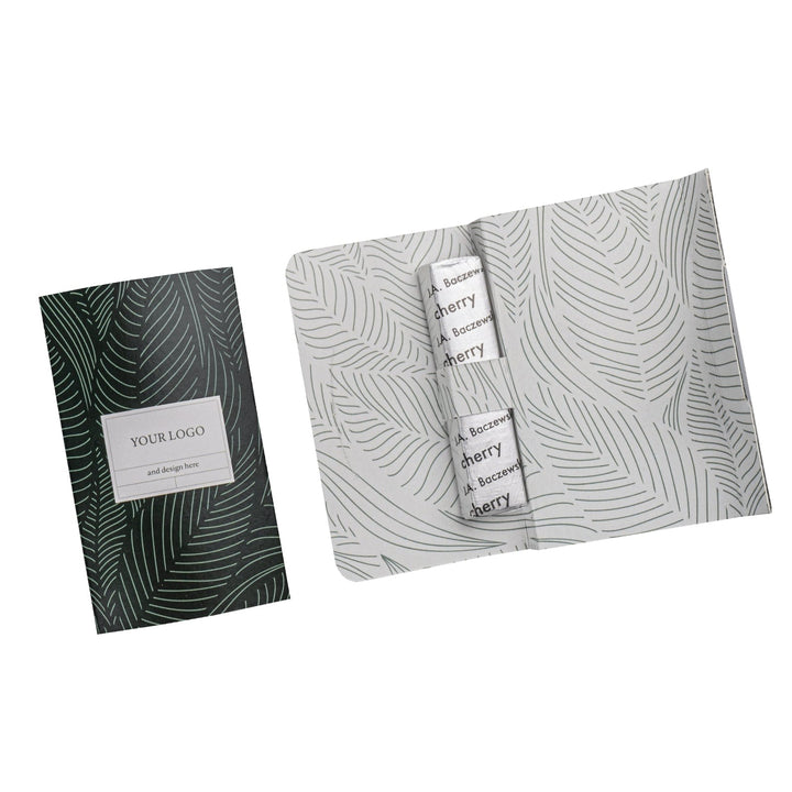 De kaart wordt standaard gemaakt van wit papier en is volledig voorzien van dubbelzijdige digitale bedrukking. Liever een natuurlijke look? Dan kies je voor kraft papier. De pralinewikkels binnenin kunnen bedrukt worden in wit of zwart, en zijn beschikbaar in zilver, goud, wit of kraft folie.